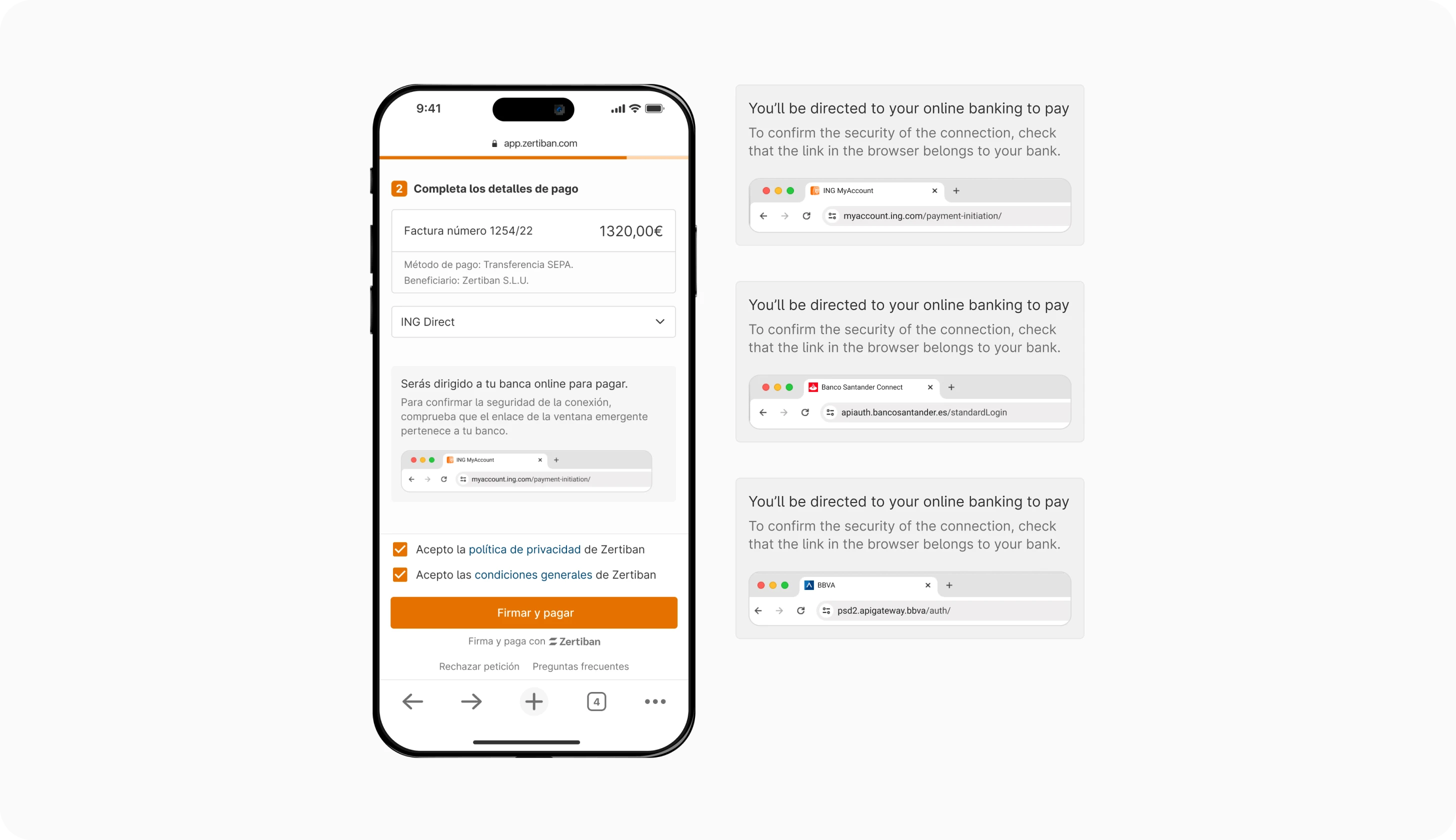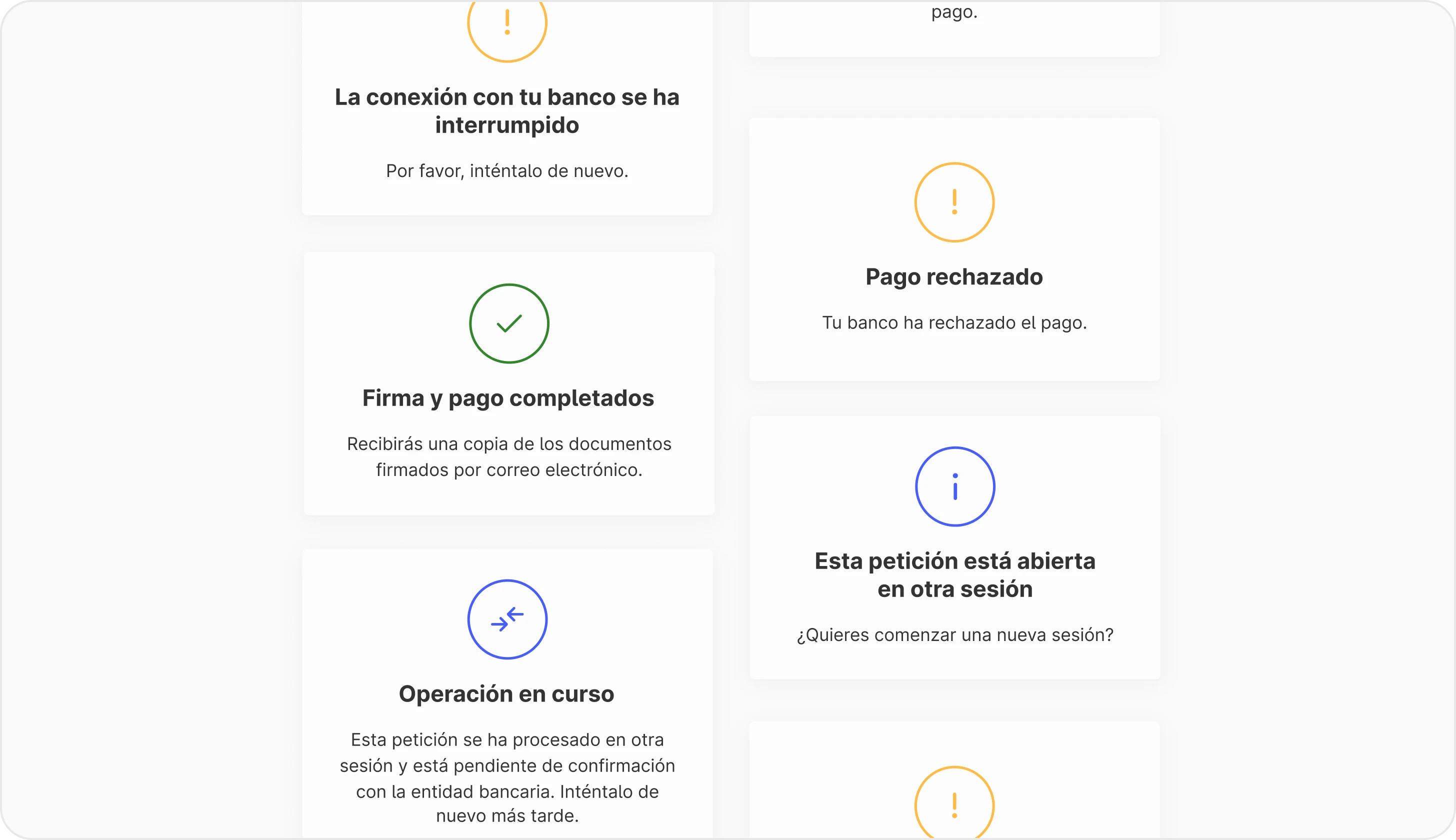 During the sign-and-pay process, there could be various errors, from issues within Zertiban’s services to connections with banks or other providers.Collaborating with back-end developers expert in PSD2, we conducted a deep research and documented potential issues. Then, we crafted tailored error messages to accurately inform users about the situation and how to proceed.