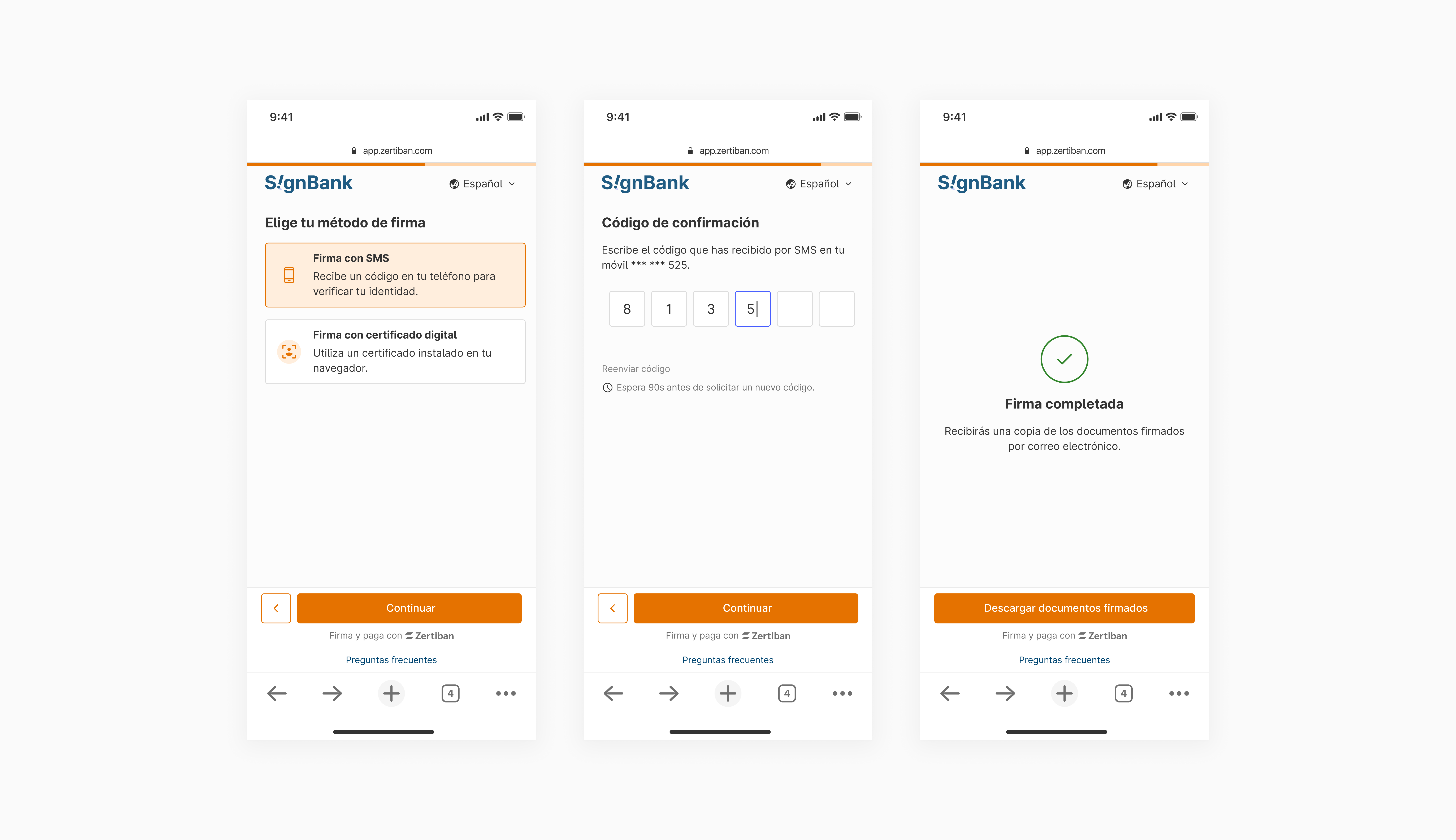 On the other hand, Zertiban collaborates with major Spanish banks, serving 90% of online banking users. For those whose banks are not yet integrated, we've implemented a failover system. This includes options for identification such as SMS and digital certificates, ensuring the documents can be signed.