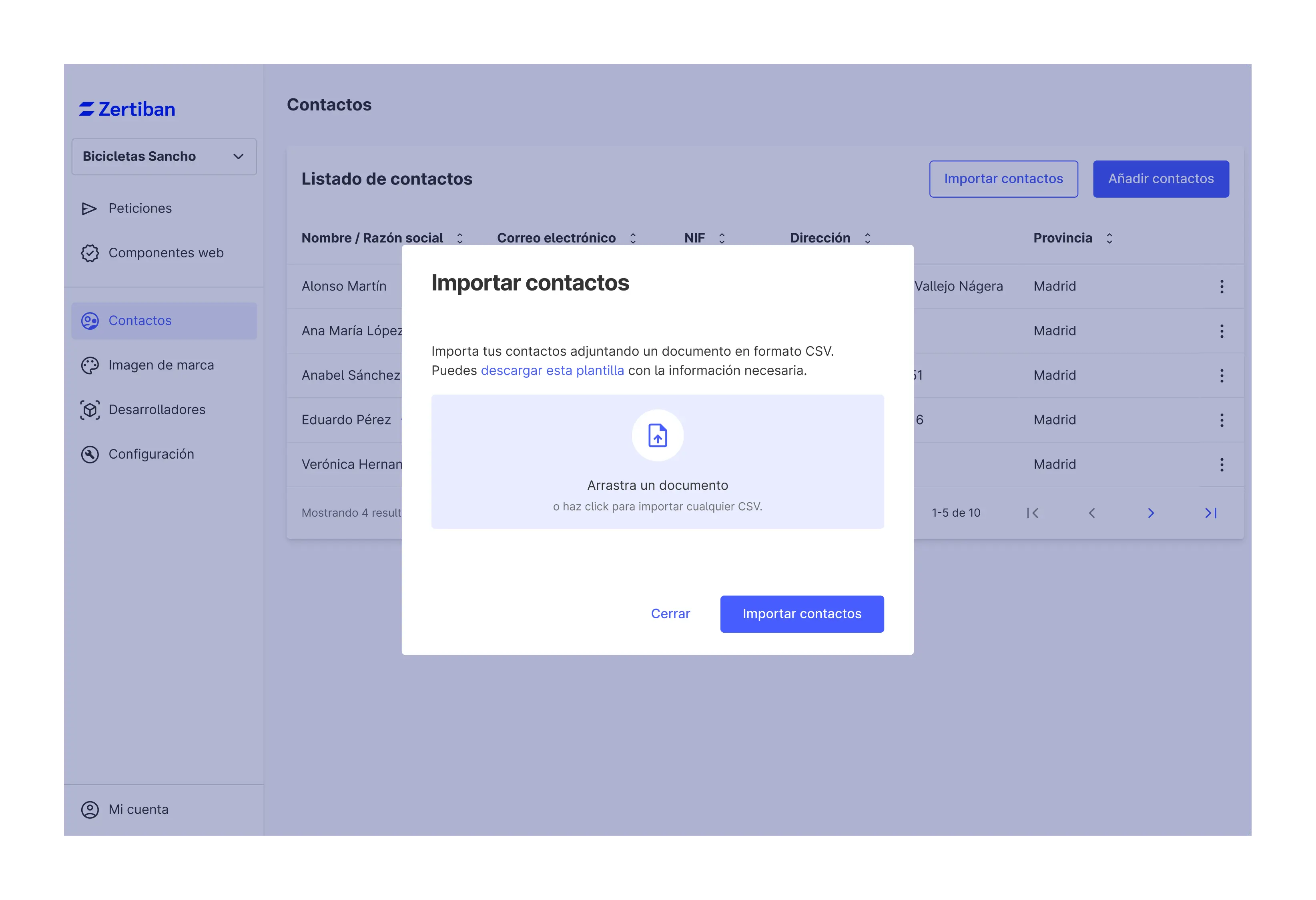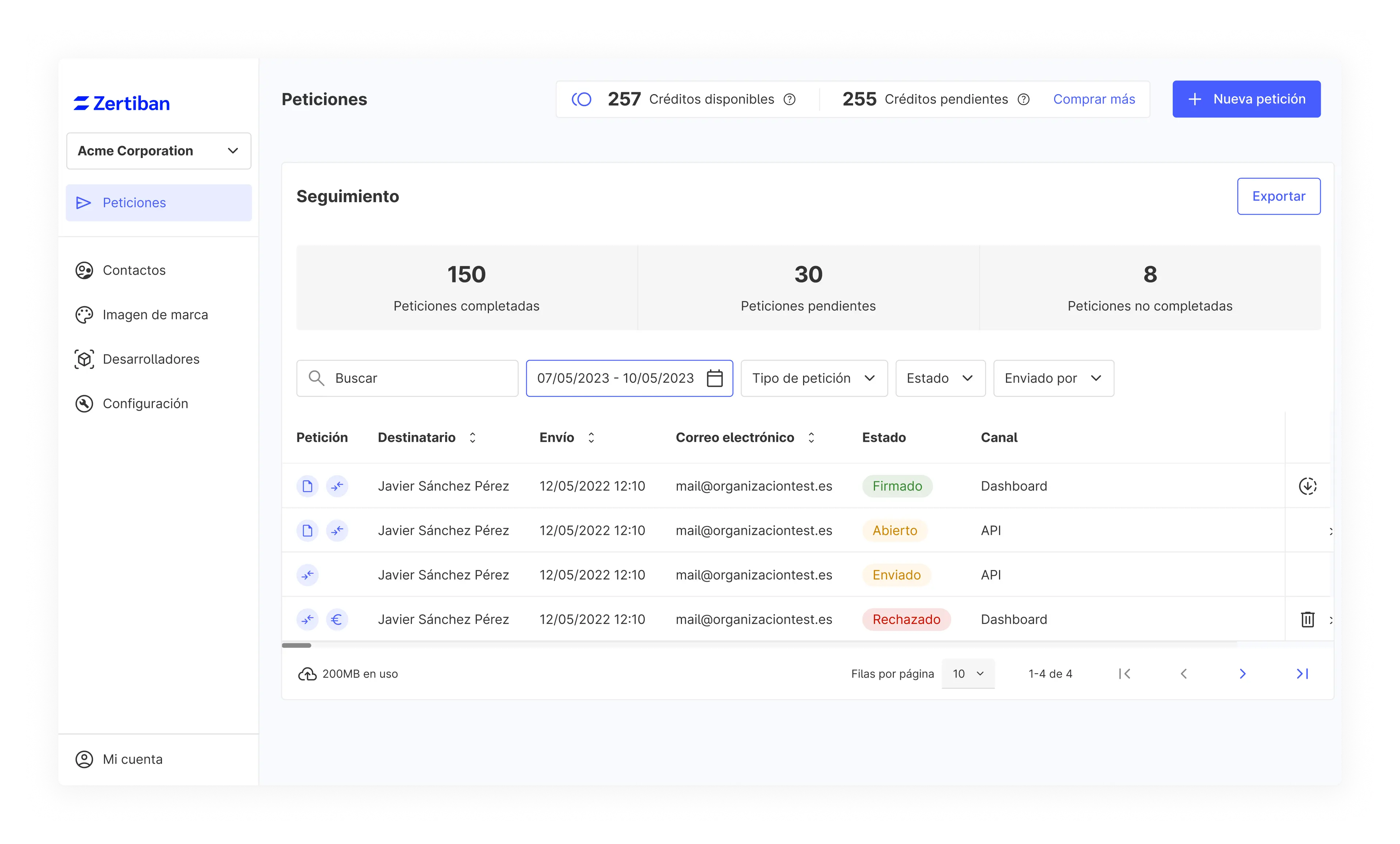 The Zertiban dashboard was crafted with the main objective of enabling users to send sign-and-pay requests effortlessly.